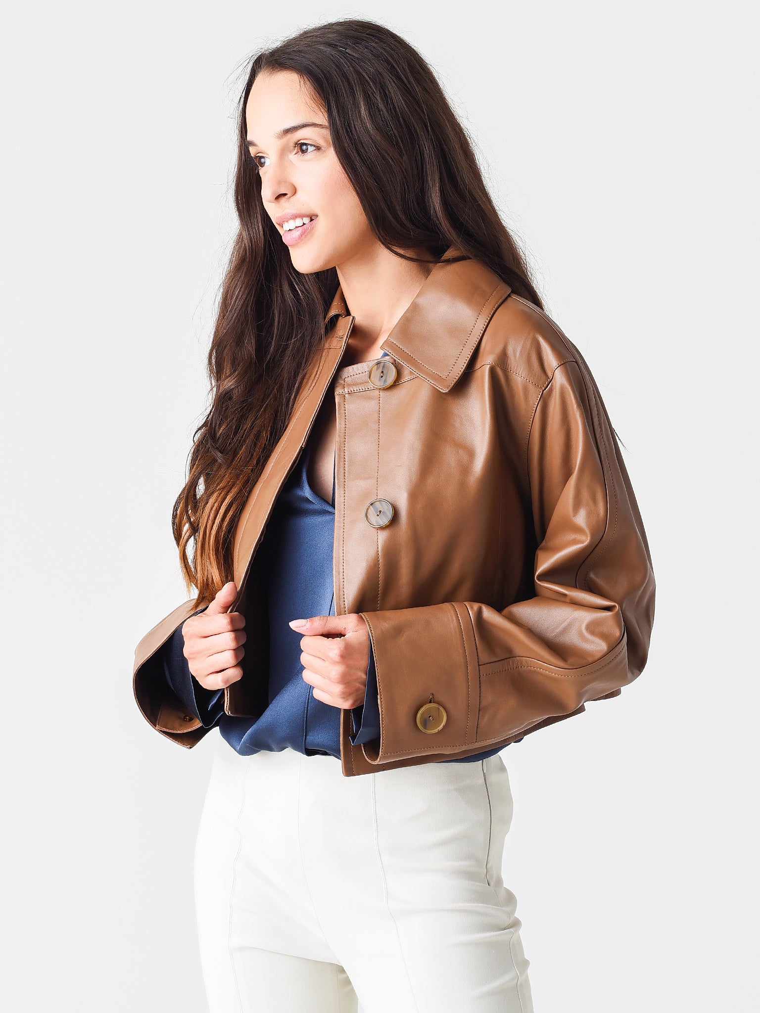 Vince Women S Leather Cropped Jacket Saintbernard Com